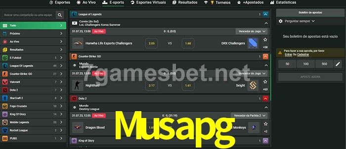 A aposta Musapg oferece aos jogadores a experiência mais conveniente de apostas em eSports!